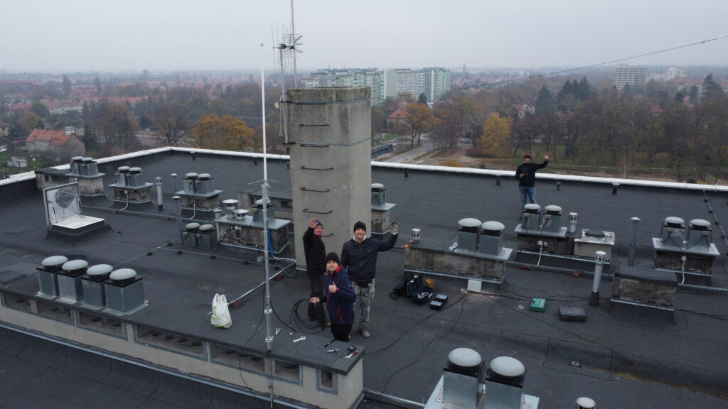 Na dach wyprowadziliśmy póki co 2 fidery 7/8″, które przyłączone są do anten 2m i 23cm. Antena 70cm, jest jeszcze nie podłączona, ale w planach jest dołożenie kolejnego fidera 7/8.